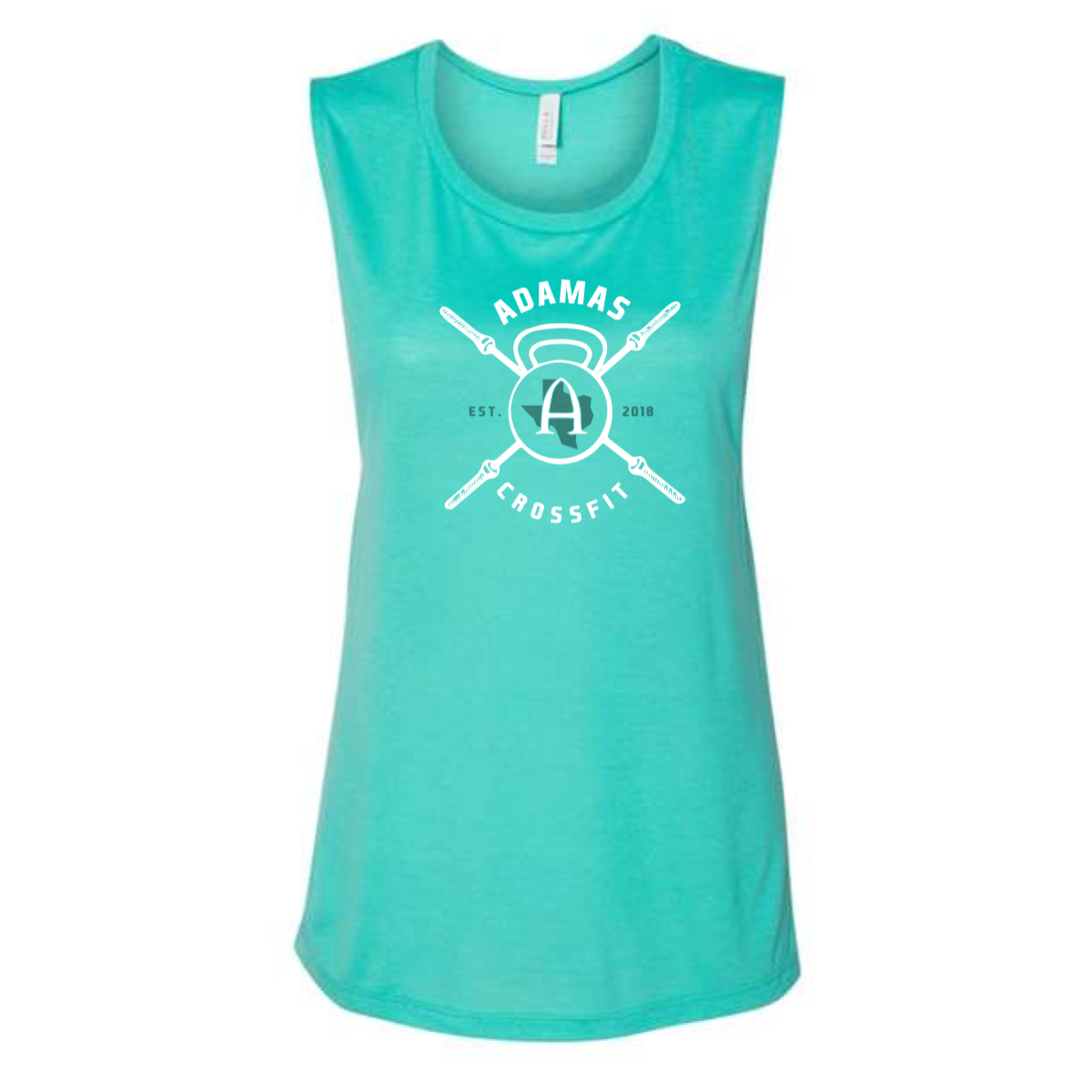 We used a teal tank to create a bright summer look. The design featured a centered crest with crossed barbells and a kettlebell. A bold A mark sat inside with a subtle Texas tie in. The layout used a circular badge to keep everything balanced. The print was placed on the chest for a clean athletic feel.
