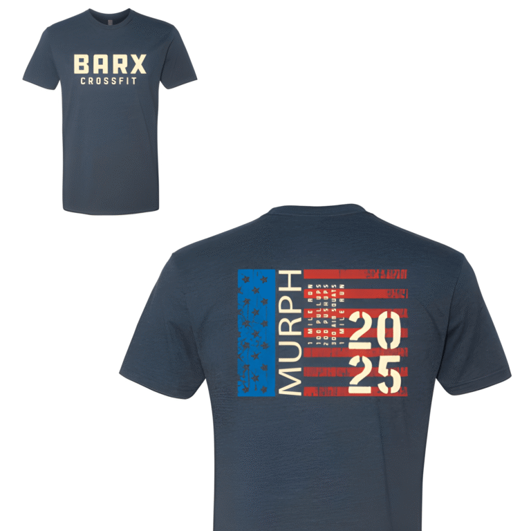 This is the kind of Murph shirt that does not end up in a donation bin. The design is bold enough for Memorial Day and clean enough to wear the rest of the year. It gives the BARX community something to hold onto long after the last air squat is done.