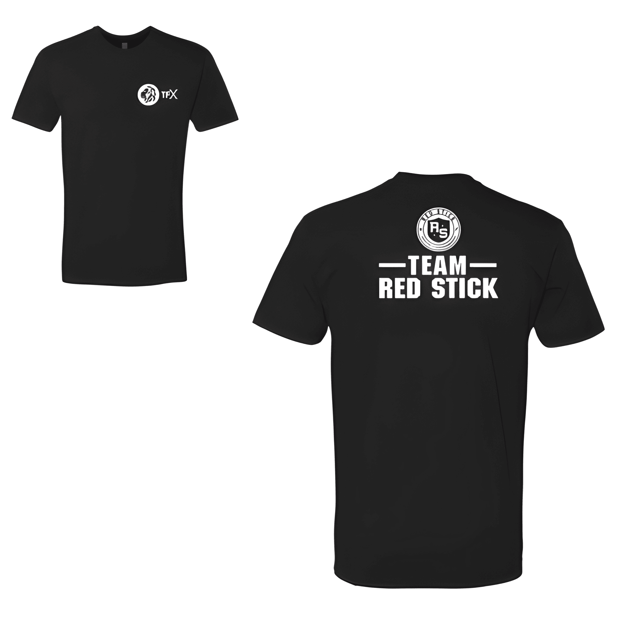 We placed TFX bold with Team Red Stick locked in underneath for a clean competition look. The tee was chosen for its comfortable fit and team event energy. Centered chest placement keeps the event and city front and center.