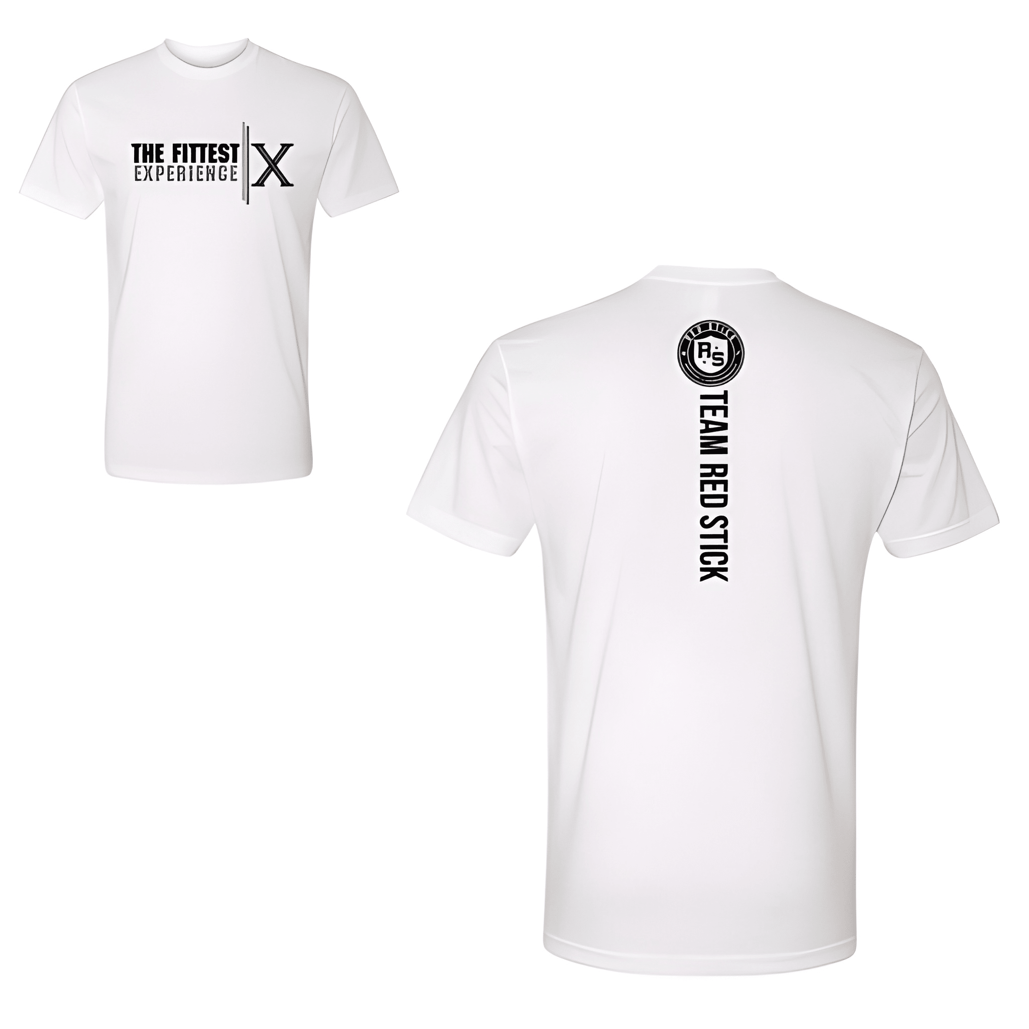 We stacked The Fittest Experience bold with Team Red Stick locked in underneath for a clean competition look. The tee was chosen for its comfortable fit and big meet energy. Centered chest placement keeps the event and team front and center.