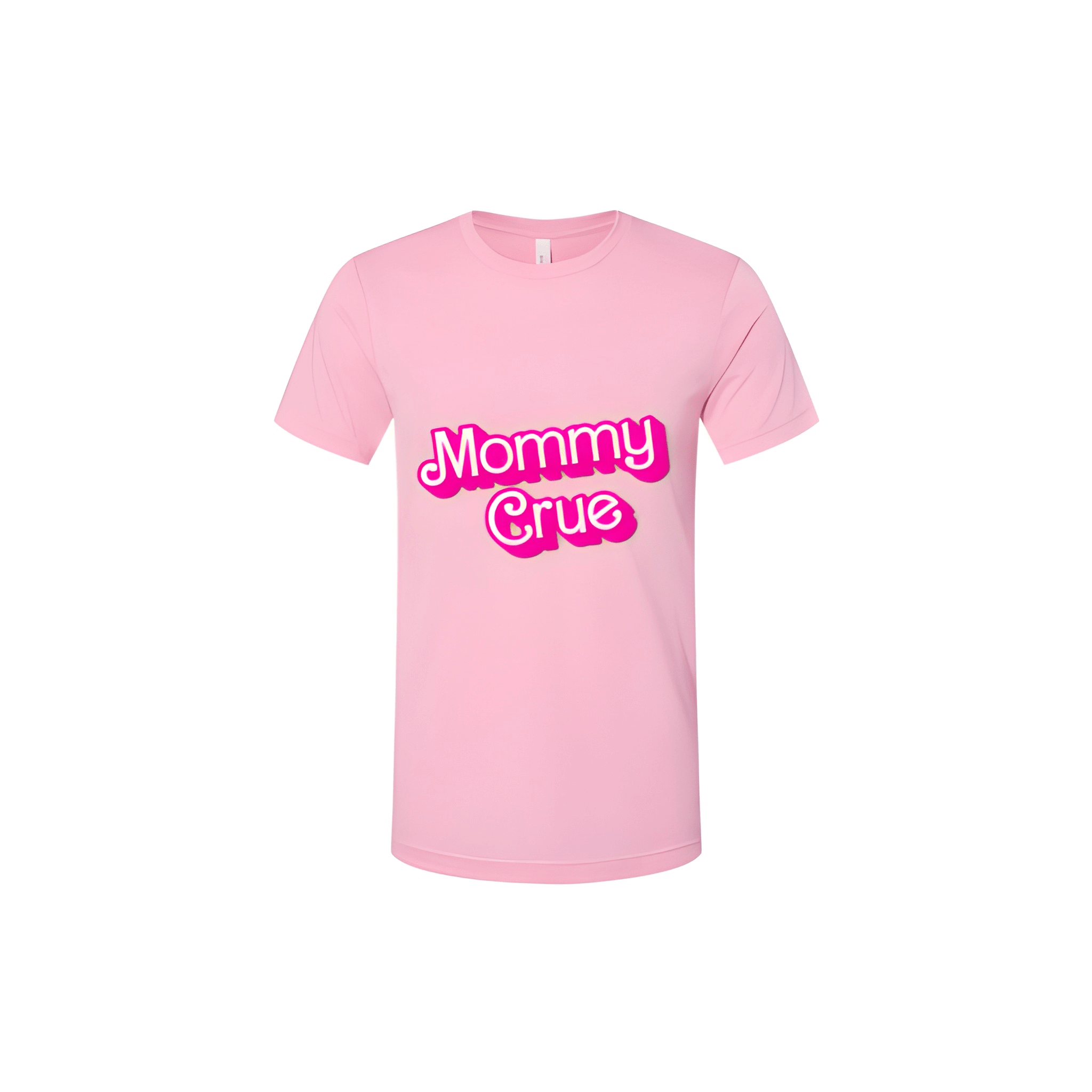 We placed Mommy Crue bold on a heather bubble gum Bella CVC unisex tee for a soft but strong competition look. The tee was chosen for its ultra soft feel and standout color. Centered chest placement keeps the crew name front and center.