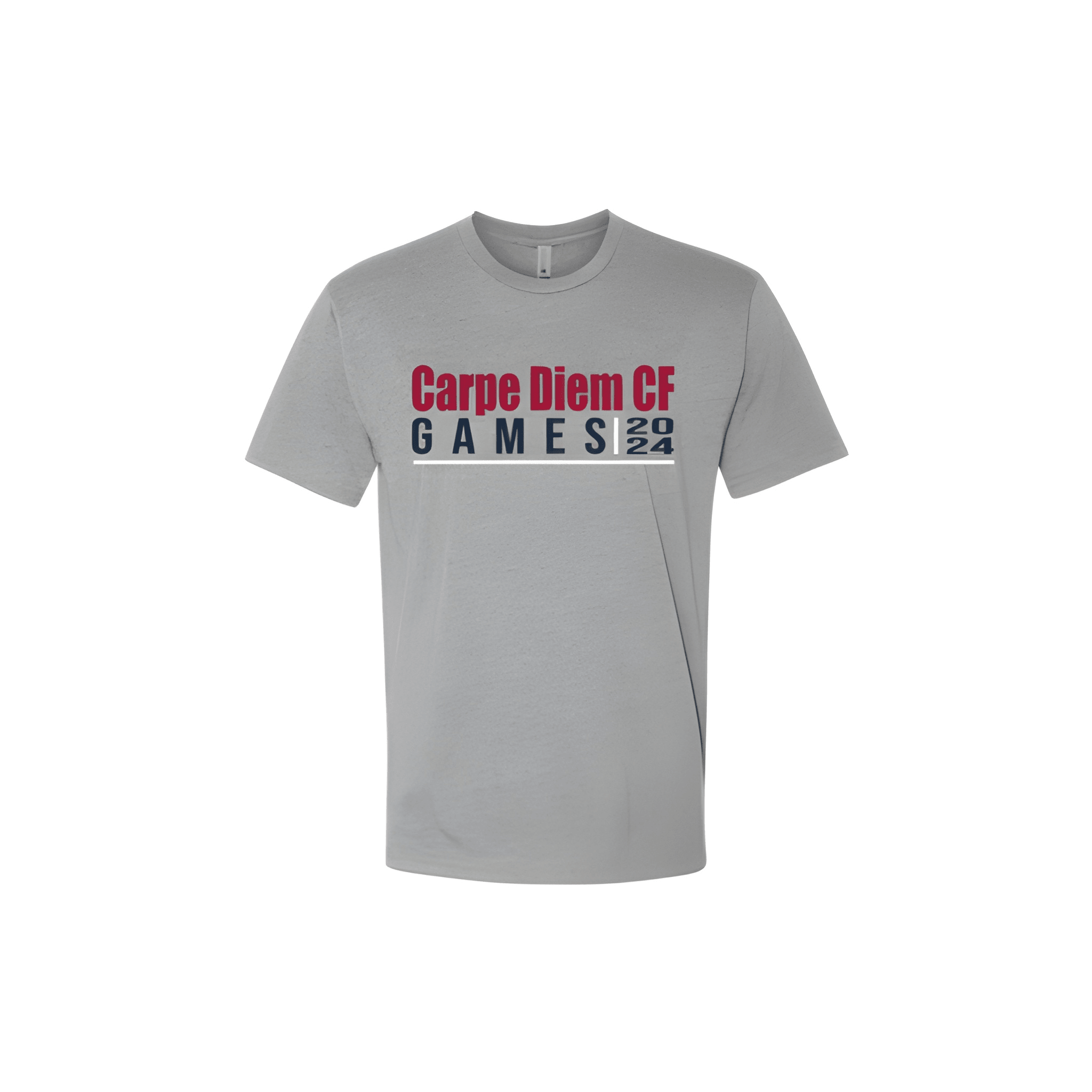 We stacked Carpe Diem CF above Games 24 for a sharp competition look. The tee was chosen for its comfortable fit and big stage energy. Centered chest placement keeps the name and season front and center.
