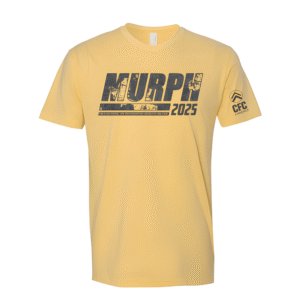 The two color palette on olive gives these murph shirts a subdued, military quality that fits the day better than anything loud would. The portrait keeps it personal. These are the gym shirts people hold onto because they feel like they actually meant something when they put them on.