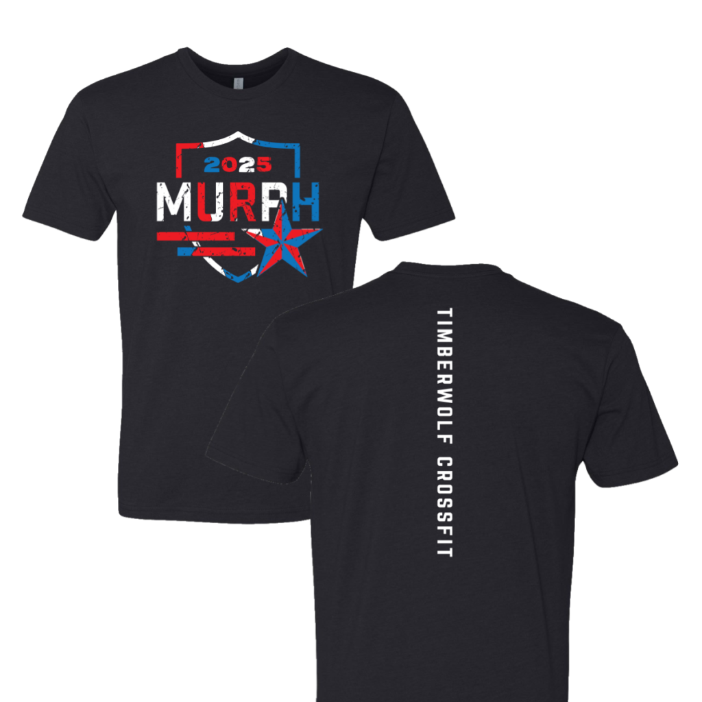 Timberwolf CrossFit: murph Lone Star Every Memorial Day, Timberwolf CrossFit shows up and does the work. These murph shirts exist to mark that moment for the people who were there. Overview The front centers a bold shield graphic built from red and blue geometric lines, with “MURPH” in heavy distressed type and a lone star […]