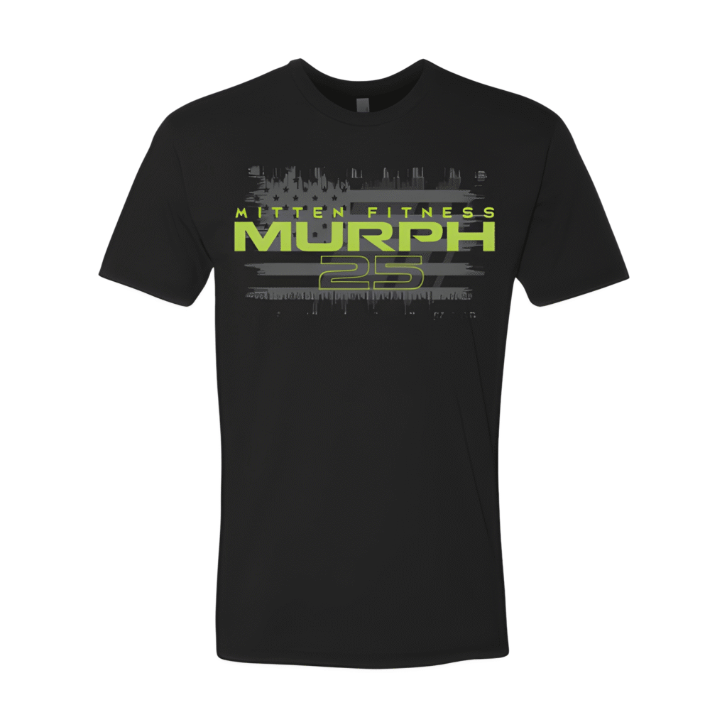 Mitten Fitness: Murph Distressed Flag Murph is hard enough without wearing a boring shirt. Mitten Fitness made sure their people had something worth keeping after the last pull-up. Overview A wide distressed American flag graphic spans the chest in charcoal gray, with bold neon green “MURPH” and “25” text printed over it on a black […]