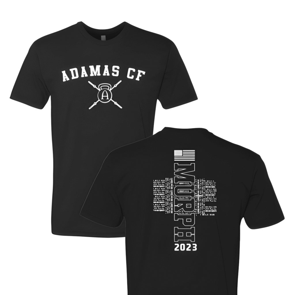 Adamas CF: Murph Iron Cross Murph asks something of everyone who shows up. Adamas CrossFit made sure their gym shirts would show that. Overview White ink on a black short sleeve. The front keeps it clean with a collegiate arch wordmark above the gym’s kettlebell and crossed barbell logo. The back does the heavy lifting […]