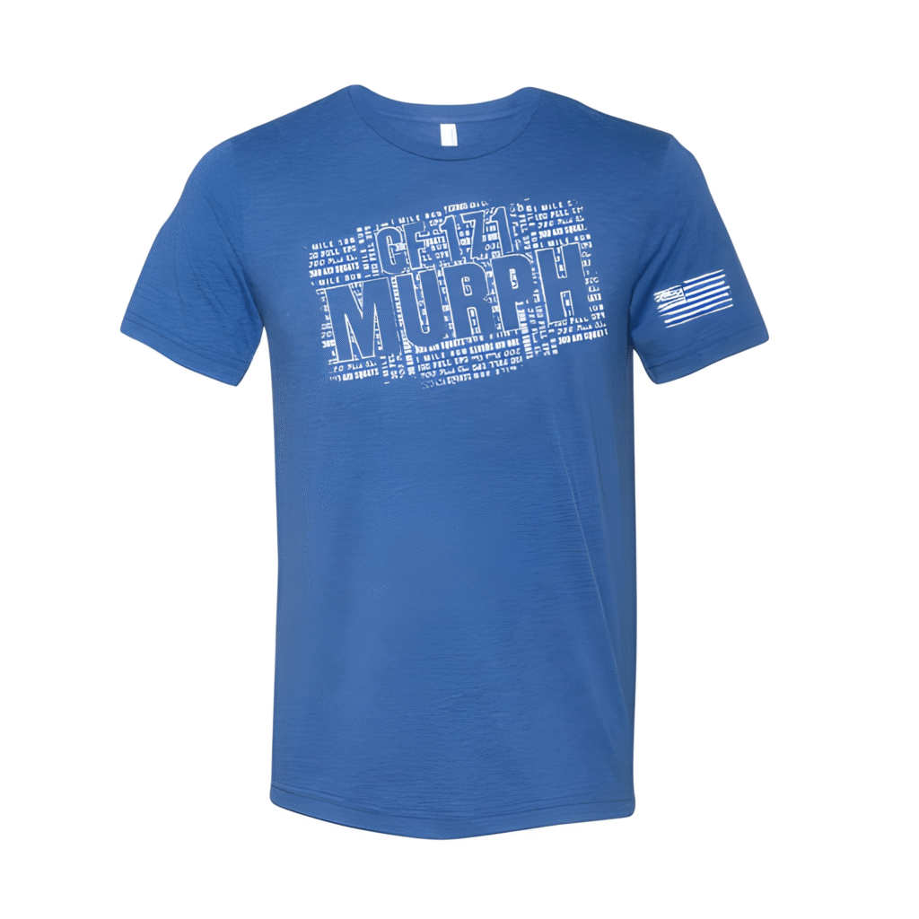 CF171: Murph Word Count CF171 shows up for Murph every Memorial Day because it matters. These gym shirts for Murph turned the workout itself into the design — every rep, every movement, right on the chest. Overview The front chest graphic is a dense word cloud built entirely from the Murph workout movements, with “CF171” […]