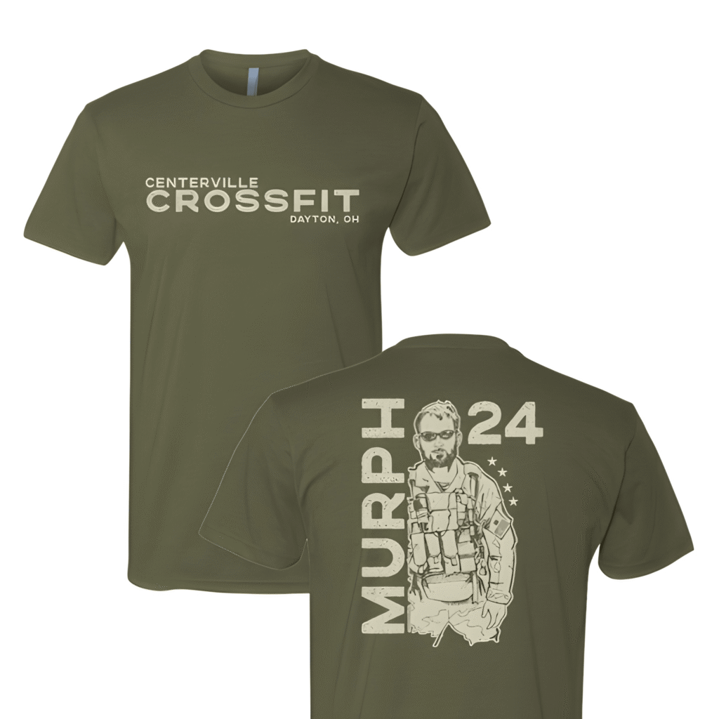 Centerville CrossFit: Murph Soldier Portrait Every gym does Murph. Not every gym does it like they mean it. This one does. Overview Printed in a single sand ink on a military green tee, the design leans into the tribute from both sides. The front keeps it clean with a bold distressed type lockup — gym […]