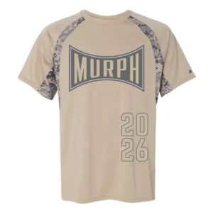 Letting the type treatment carry the whole design was the right call here. The camo fill gives these murph shirts a military feel without needing any extra imagery. The black garment makes it versatile enough to wear well past Memorial Day without looking like a workout shirt.