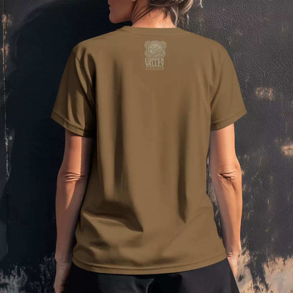 The full crest treatment makes this the most formal-feeling shirt in the Copper Valley Strength Murph lineup. It looks less like a crossfit shirt and more like something commemorative, which is exactly the right call for a gym that takes Memorial Day seriously. Members will keep this one because it looks like it was made for a reason, not just for a workout.