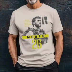 Offering the same design on two different garment and ink combinations was a smart call. The olive version reads more military, more muted, more earned. These murph shirts work because the back never changes — the dedication stays exactly what it is no matter what color you put it on.