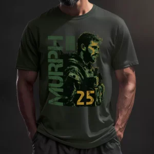 The battle cross is one of the most loaded images in military culture and putting it on a Murph shirt is a deliberate choice. It shifts the shirt from athletic to memorial in a single illustration. These are the gym shirts people wear once a year on purpose and keep for the rest of their lives.