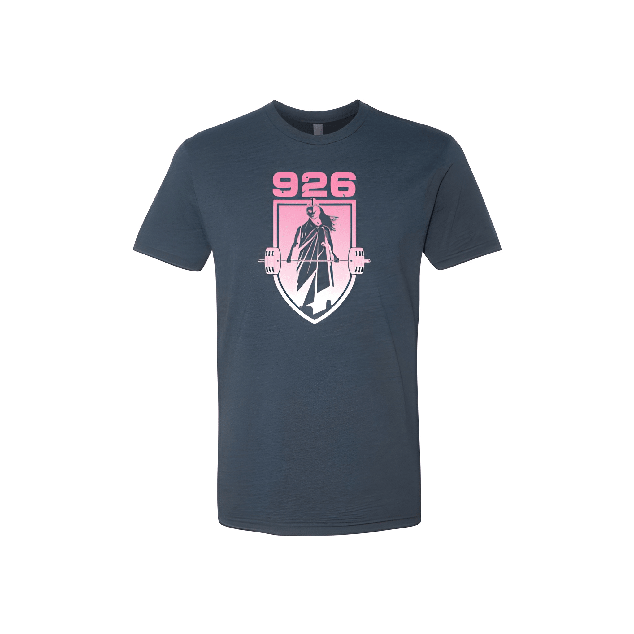 We placed the 926 mark bold on a midnight navy Next Level CVC unisex tee for a clean competition look. The tee was chosen for its ultra soft feel and rich deep color. Centered chest placement keeps the gym name front and center.