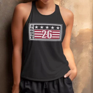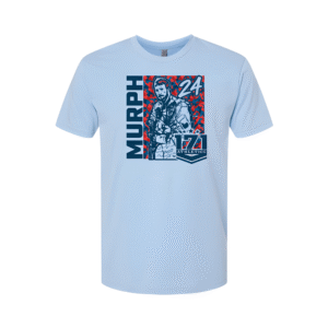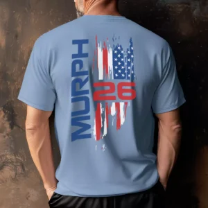 The distressed white flag on olive is one of those combinations that just works every time and this execution earns it. The worn texture gives the whole shirt a field quality that feels appropriate for the day. These murph shirts hold up as everyday wearables long after Memorial Day because the olive and white palette never goes out of season.