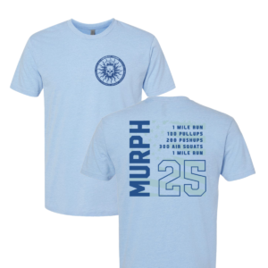 The distressed star gives these crossfit shirts a worn-in quality that feels earned rather than designed. Light blue is an unexpected call for a Murph shirt and it works — wearable long past Memorial Day without looking like gym merch. These are the kind of murph tshirts people actually hold onto.