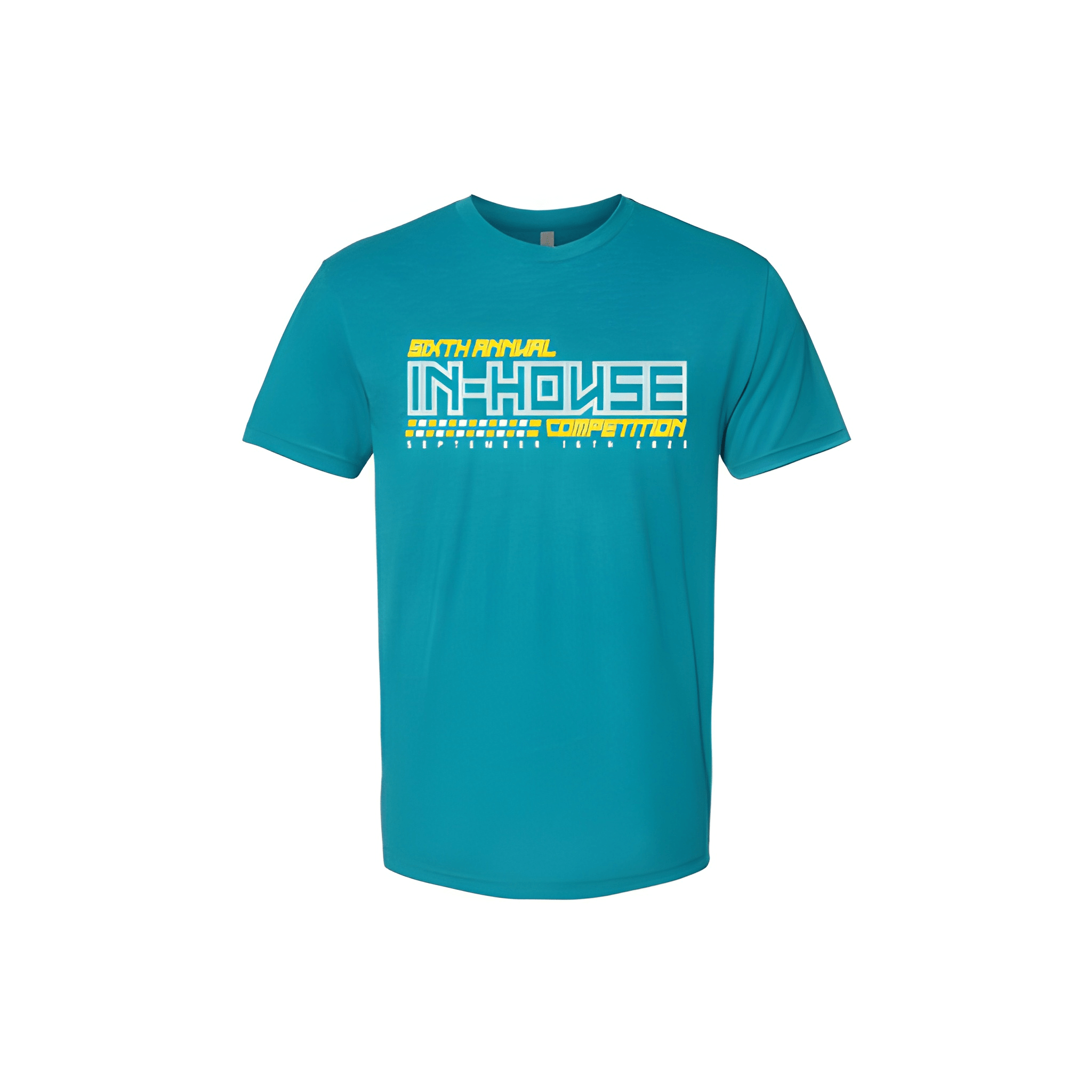 We placed Sixth Annual bold above In-House Competition for a clean milestone event look. The tee was chosen for its comfortable fit and tradition filled energy. Centered chest placement keeps the legacy front and center.