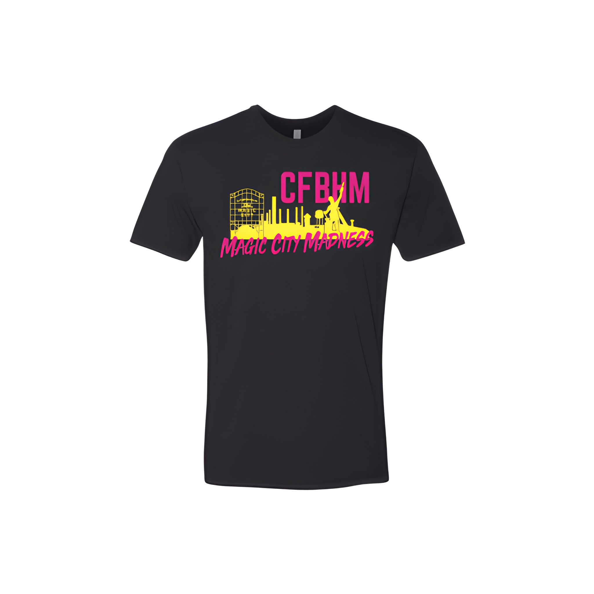 We placed CFBHM bold with Magic City Madness locked in for a clean competition look. The tee was chosen for its comfortable fit and hometown throwdown energy. Centered chest placement keeps the gym and event front and center.