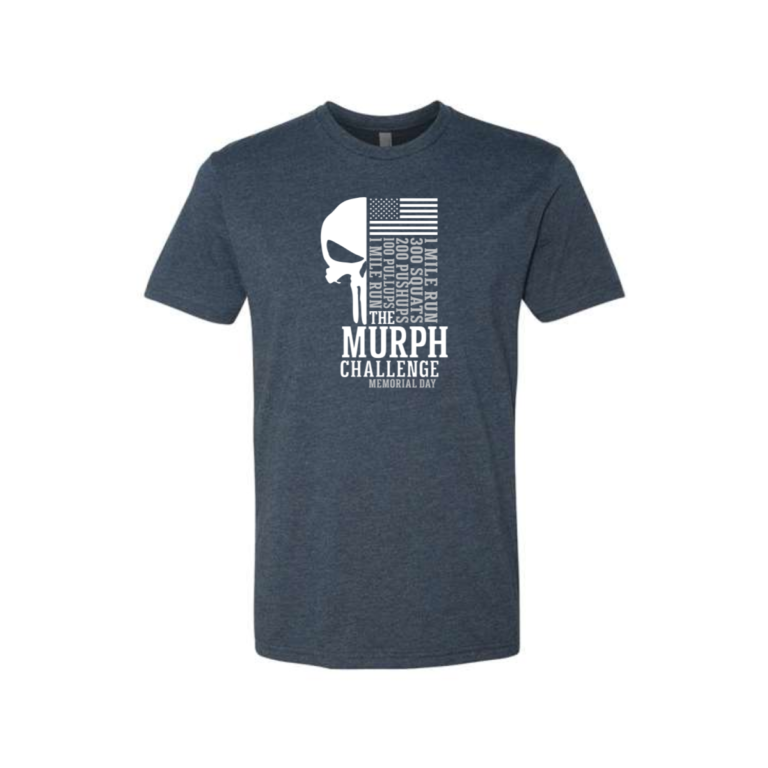 The Punisher skull has become a symbol of military and first responder culture, so pairing it with the workout reps makes these murph shirts feel like they belong in that conversation. The steel blue keeps it from looking like every other black Murph tee out there. These are the kind of gym shirts that get worn to the cookout after the workout is done.