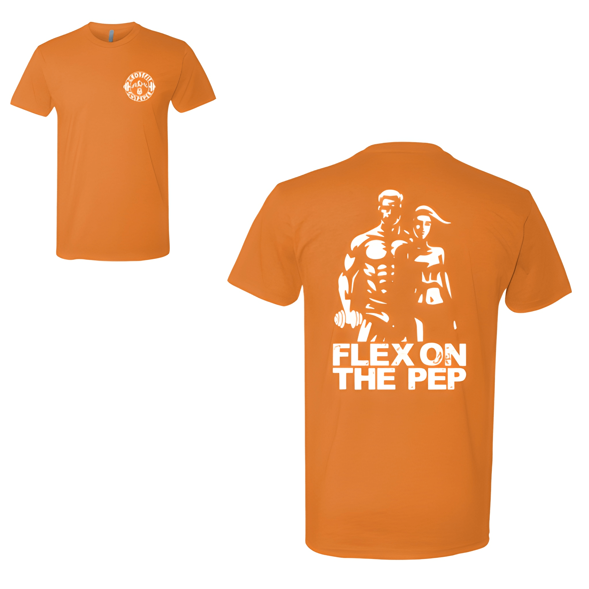 We placed Flex On The Pep bold across the chest in a clean competition ready layout. The tee was chosen for its comfortable fit and event day swagger. Centered chest placement keeps the name front and center.