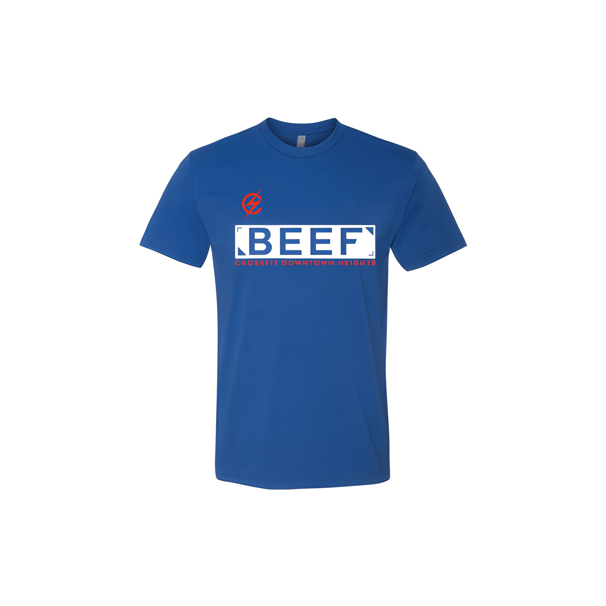 We placed Beef bold above CrossFit Downtown Heights in a clean rivalry competition look. The tee was chosen for its comfortable fit and settle the score energy. Centered chest placement keeps the challenge front and center.