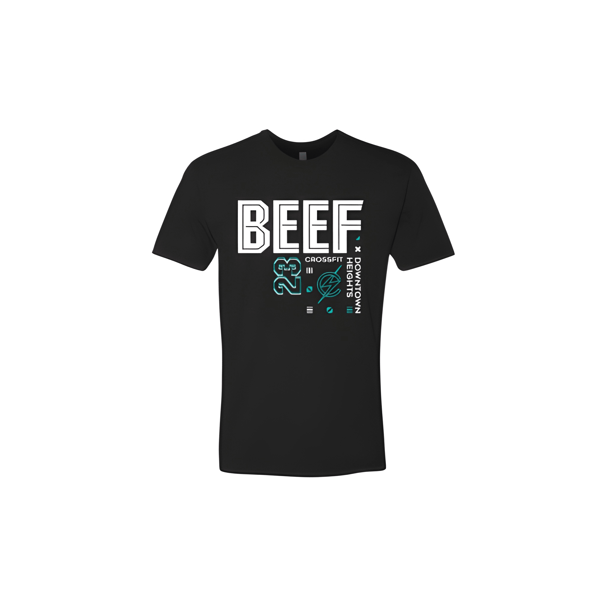 We placed Beef bold above CrossFit Heights in a clean rivalry ready competition look. The tee was chosen for its comfortable fit and settle it on the floor energy. Centered chest placement keeps the challenge front and center.
