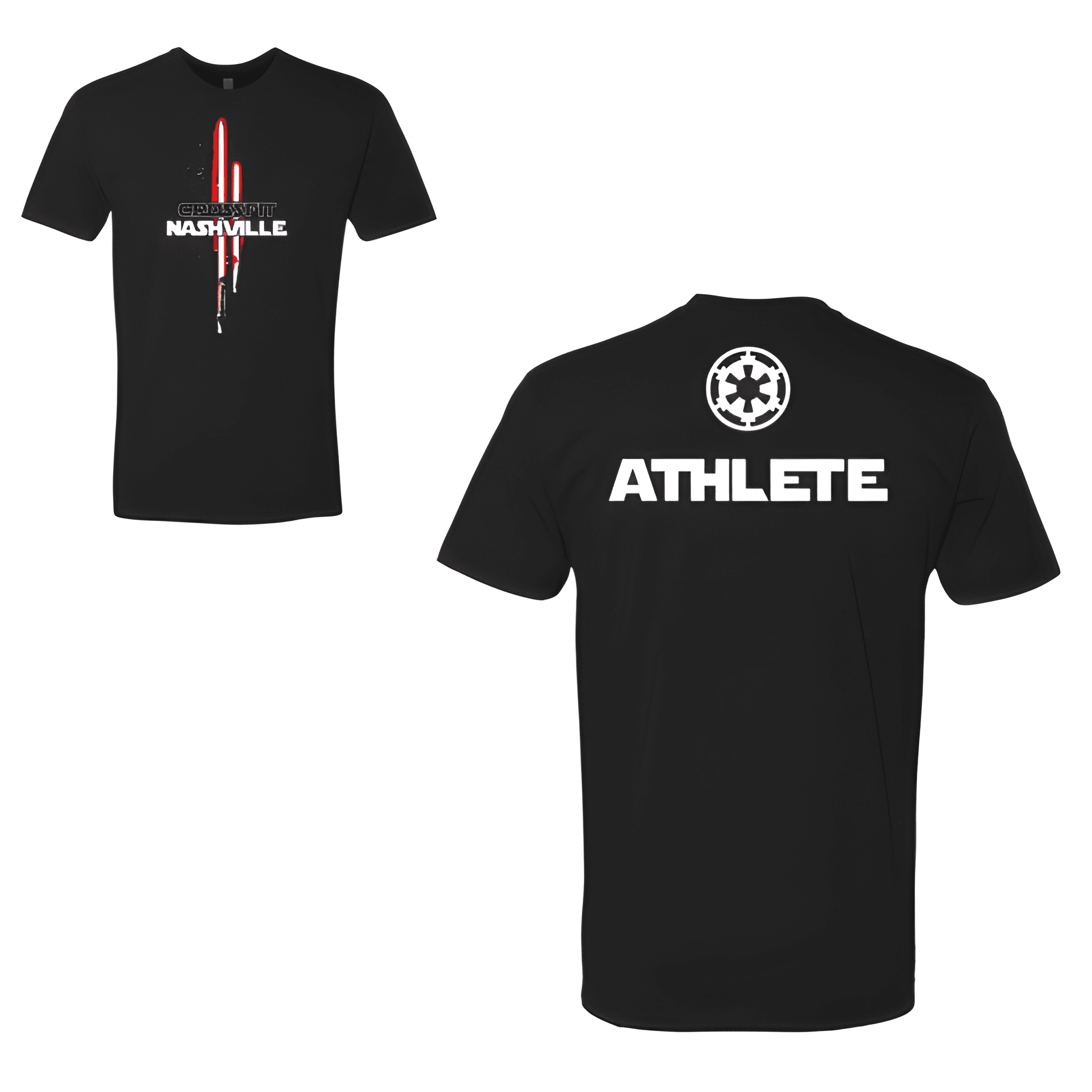 We placed CrossFit Nashville bold above Athlete in a clean competition ready layout. The tee was chosen for its comfortable fit and big stage energy. Centered chest placement keeps the name and role front and center.