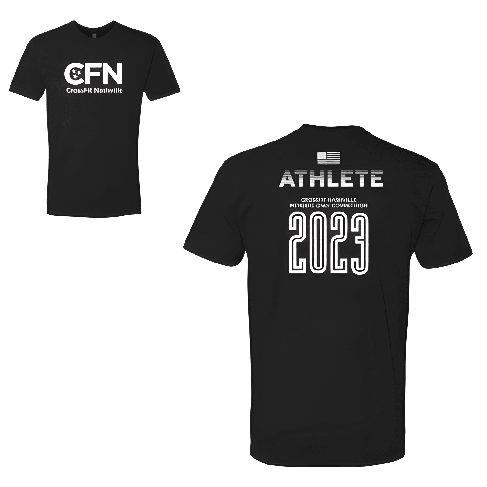 We placed CFN bold with Athlete and Members Only Competition 2023 locked in for a clean in house look. The tee was chosen for its comfortable fit and gym family feel. Centered chest placement keeps the event front and center.