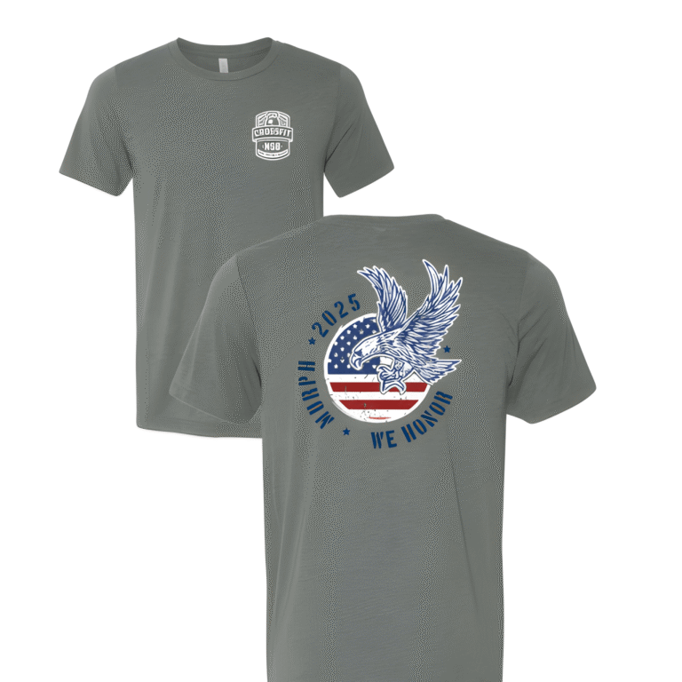 This gym shirt is built to live past Memorial Day weekend. The eagle graphic is big and confident, the kind of design people actually wear again. Pairing the bold back print with a subtle chest logo keeps it from feeling like a costume. It is a Murph t-shirt that earns a spot in the regular rotation.
