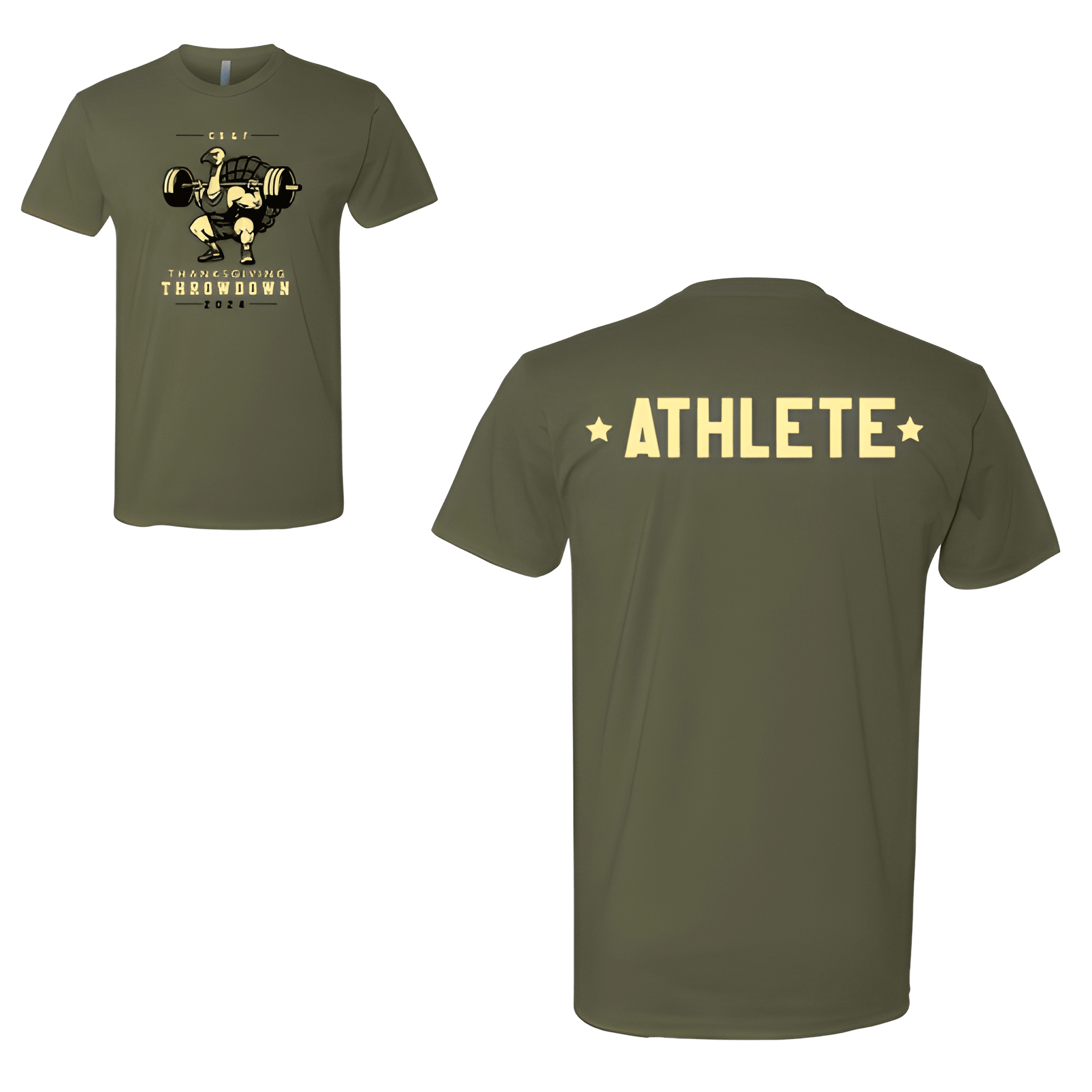 We stacked Thanksgiving Throwdown bold with 2024 and Athlete locked in for a clean holiday competition look. The tee was chosen for its comfortable fit and pre feast energy. Centered chest placement keeps the event and year front and center.