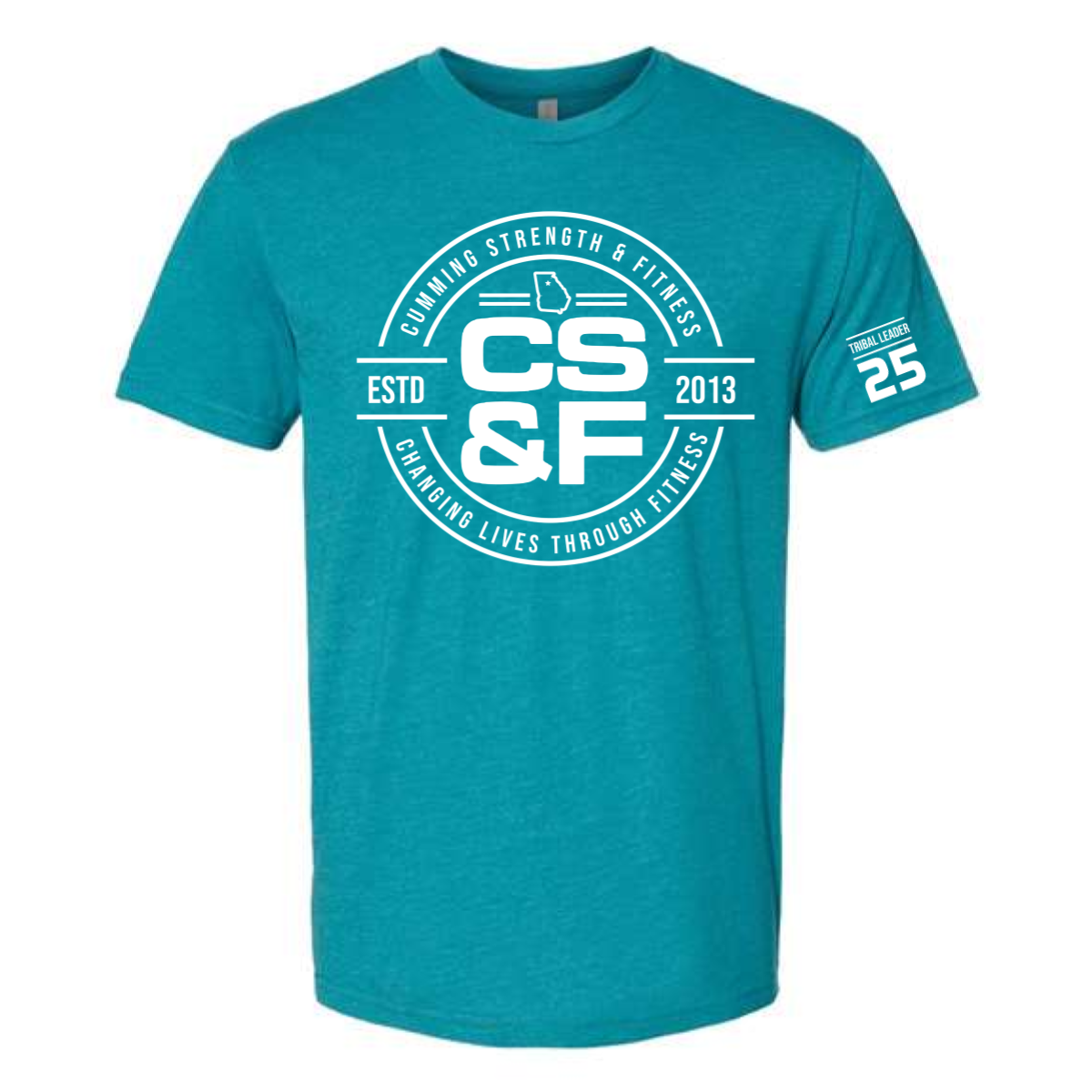 We used a teal shirt to bring more color and energy. The front kept the same strong circle seal layout. Clean white ink made the design pop on the fabric. Key details like estd year and message stayed clear and bold. A sleeve print added a custom member detail.