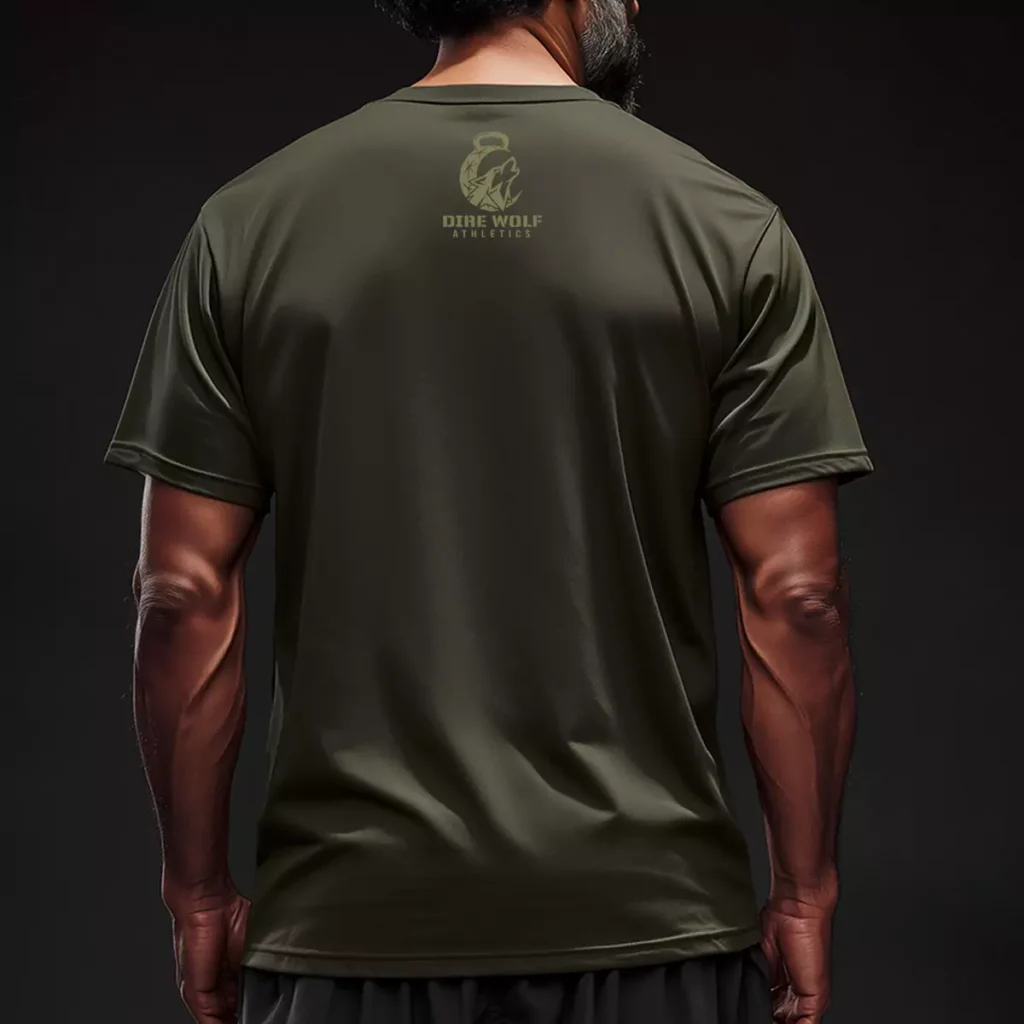 The fully tonal approach puts this crossfit shirt in a category by itself in the Murph lineup. It reads as serious and intentional in a way that louder shirts cannot match. Dire Wolf Athletics ended up with a Murph shirt that looks like it belongs on a veteran and wears just as well on anyone who showed up and did the work.