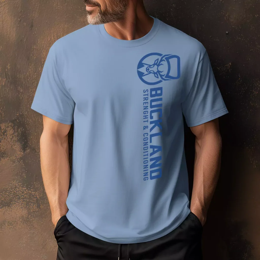 Buckland Strength and Conditioning ran this one on a sky blue tee and it hits different in the sunlight.