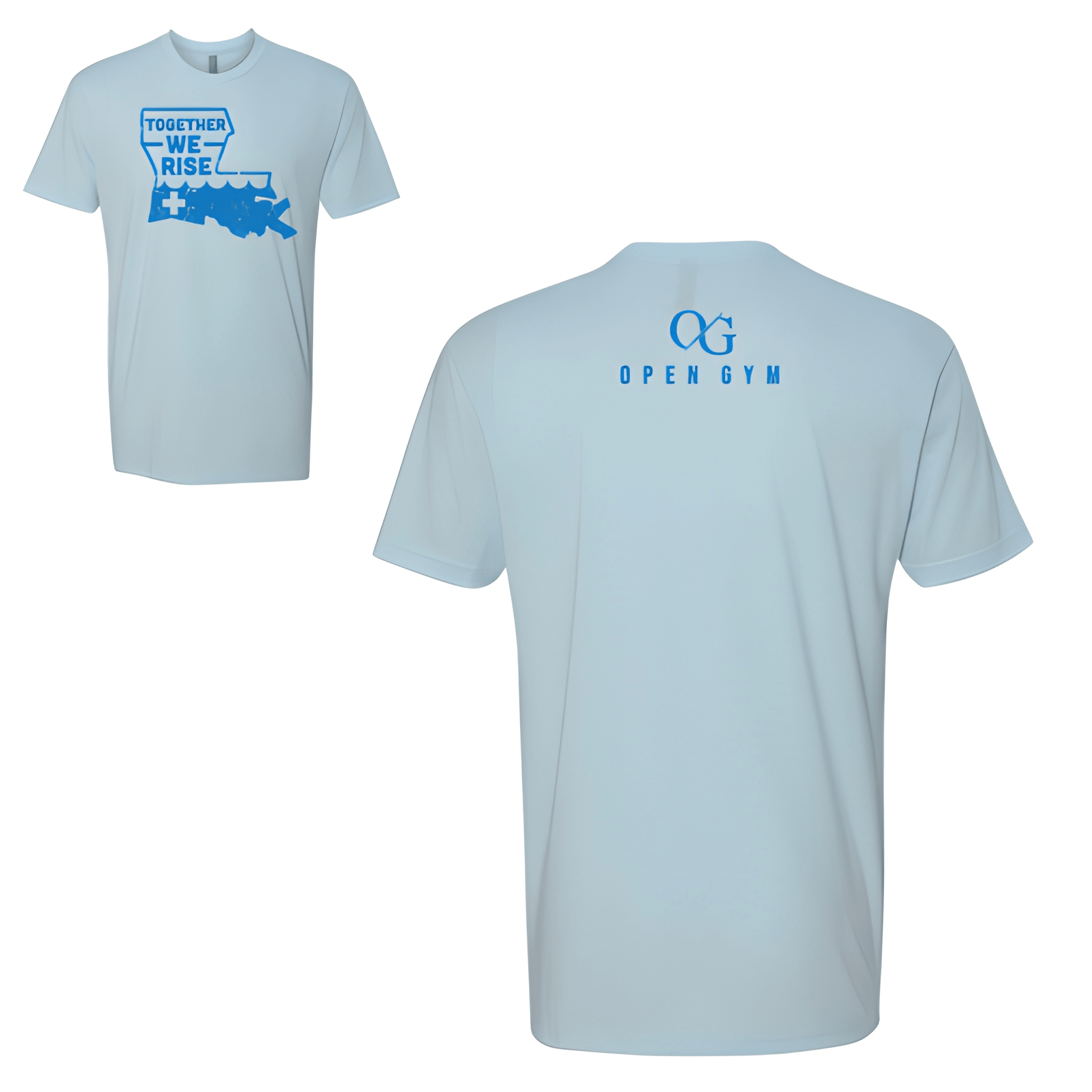 We stacked "Together We Rise" bold across the chest with Open Gym locked in underneath for a unifying fundraiser look. The tee was chosen for its comfortable fit and hope driven message. Centered chest placement keeps the rally cry front and center.