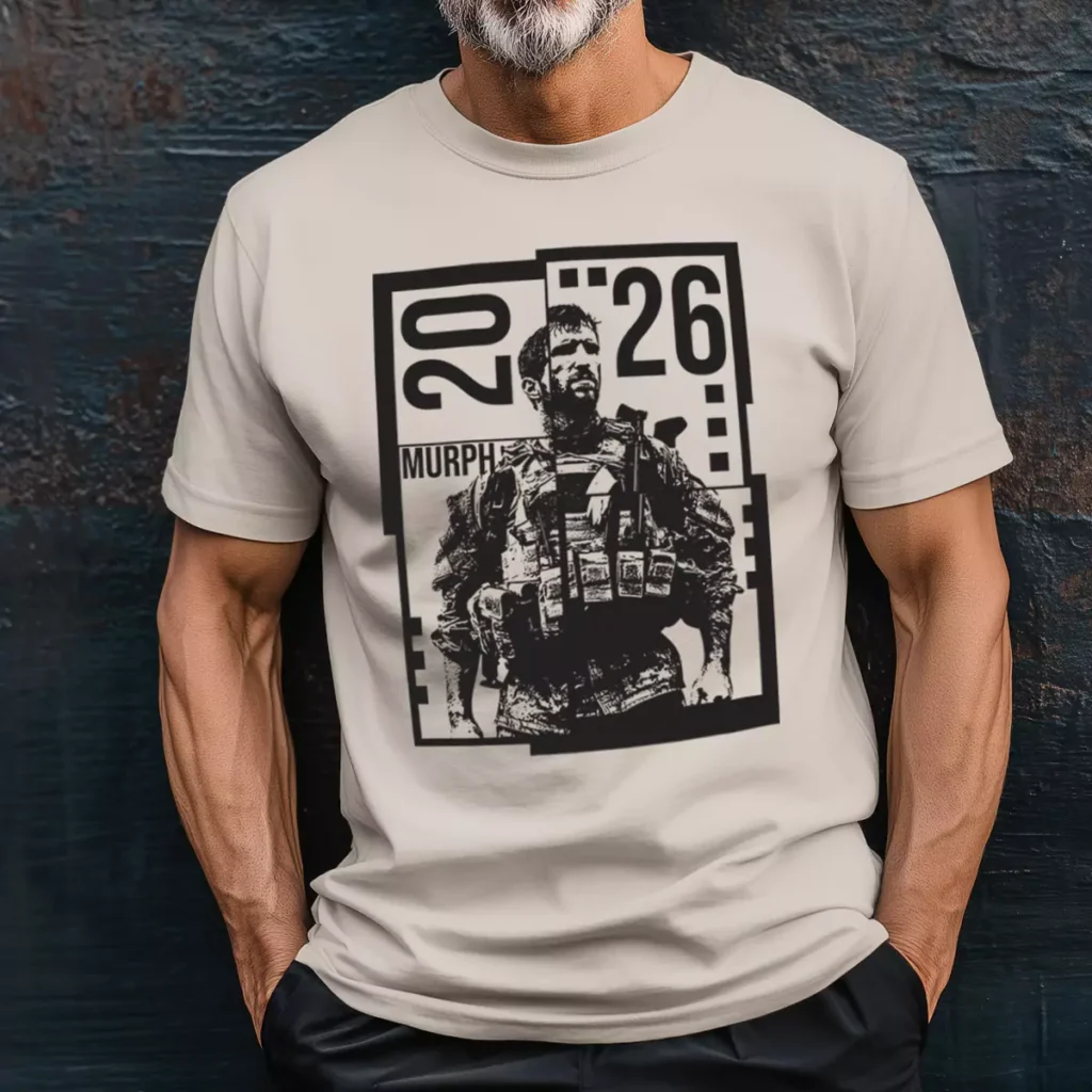 Some moments deserve to be preserved. This Murph shirt treats the tribute like a photograph worth keeping — framed, high contrast, and impossible to overlook.
