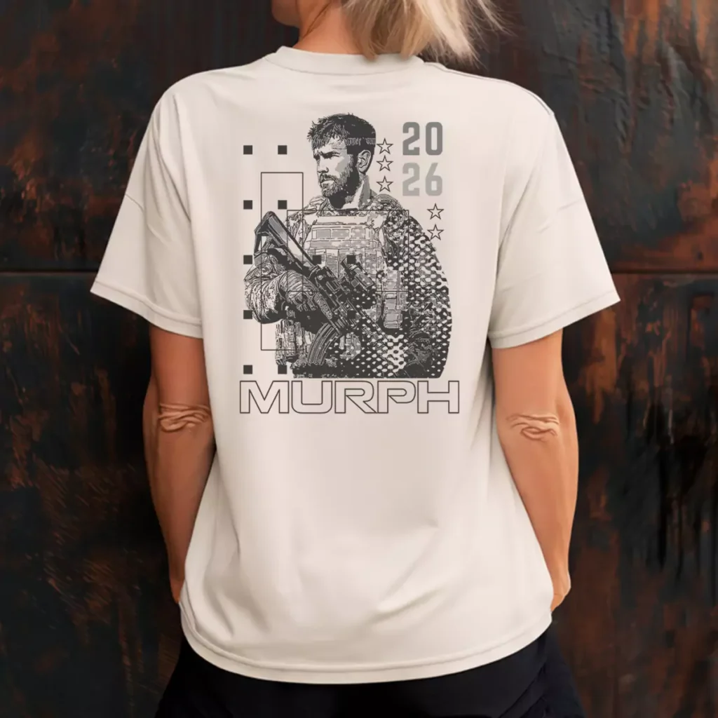 The pixel grid and halftone breakup treatment is one of the more technically interesting approaches in the Murph tshirt portfolio — it pulls from screen printing culture and tactical design without feeling like either one directly. As a custom gym shirt it rewards a second look, which is exactly what a well made piece should do. These murph tshirts are built for the kind of gym that pays attention to details.