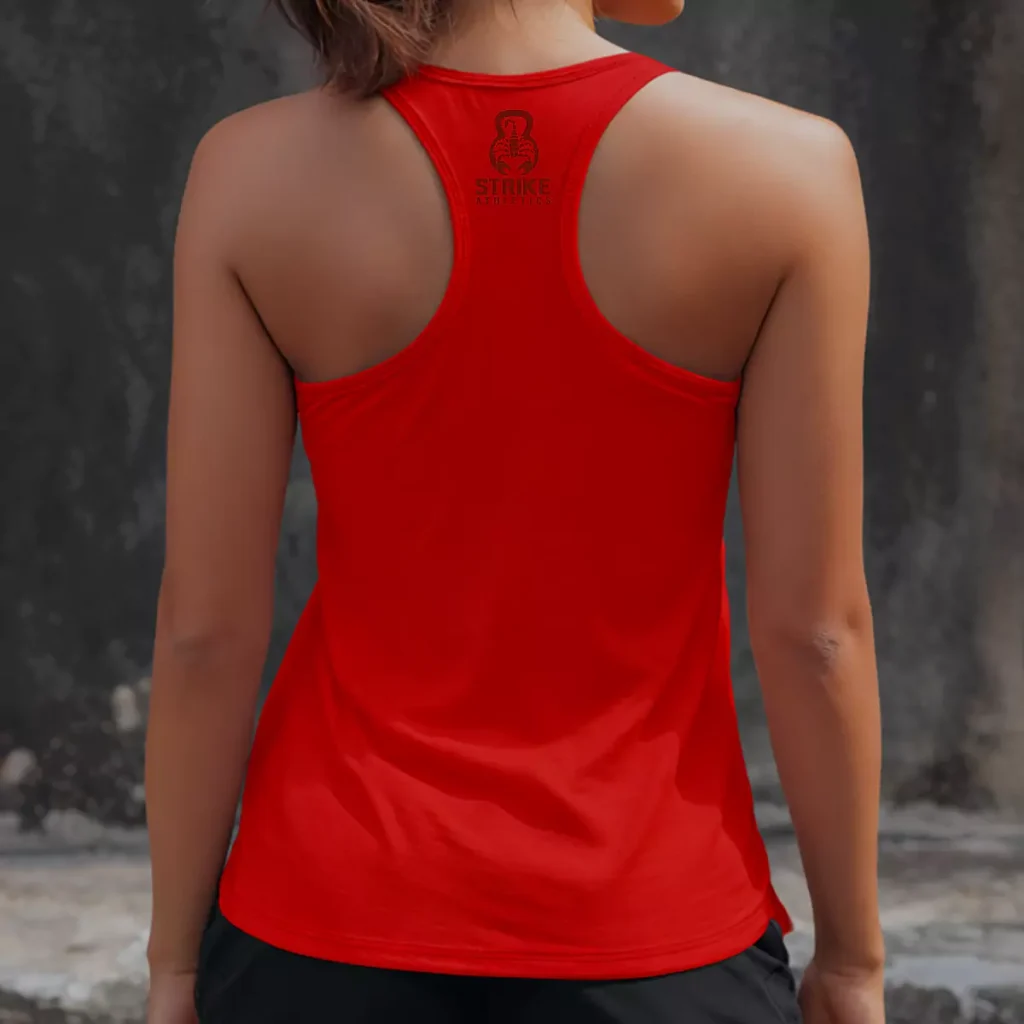 Red, white and navy on a red racerback — this Murph tank commits fully to the American color story and does not blink.