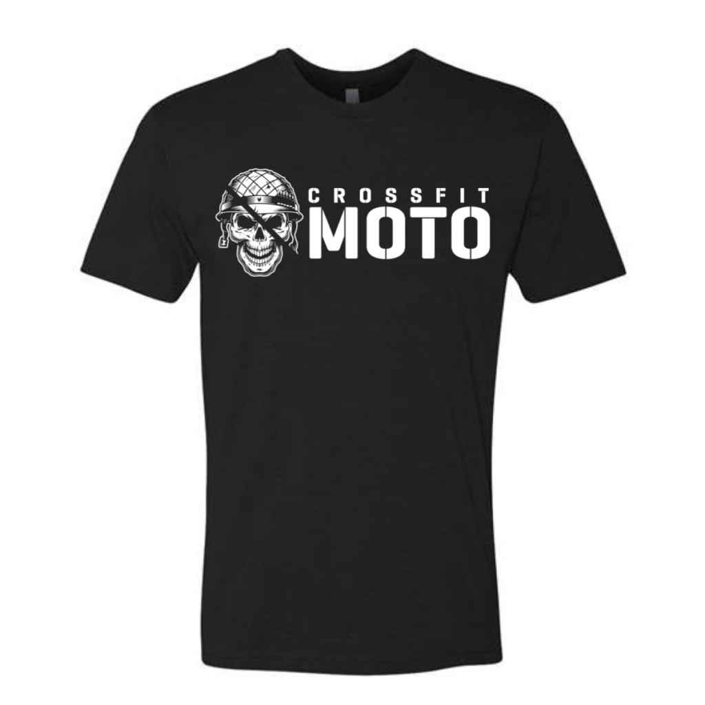 CrossFit Moto Skull Core Tee This shirt delivered a clean and bold gym look. Overview We used a classic black tee for a strong base. The front design paired a detailed skull graphic with a helmet and bold CrossFit Moto type. The layout kept the skull on the left and the text on the right […]