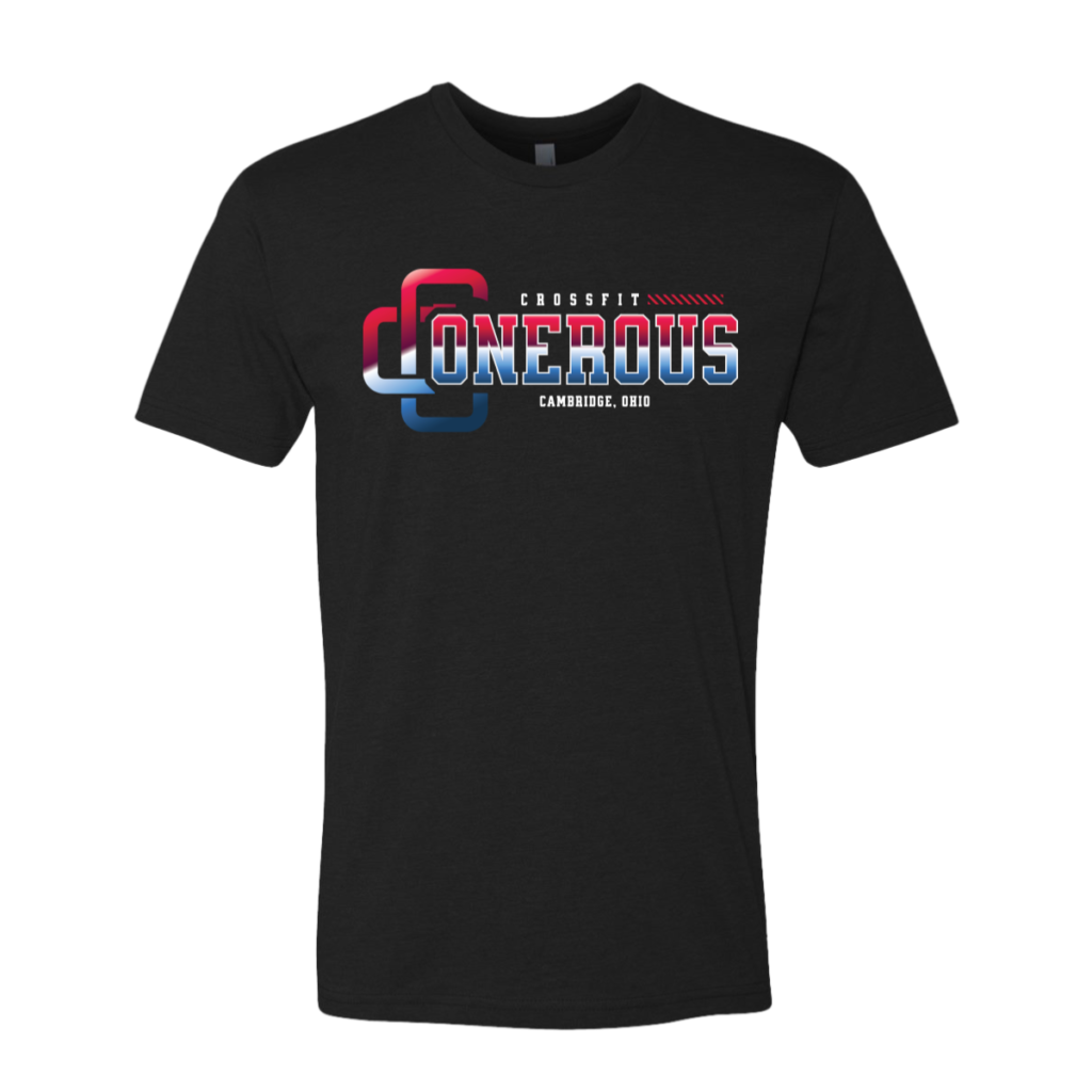CrossFit Onerous Gradient Lockup Tee This shirt delivered a bold and modern gym identity. Overview We used a black tee to create strong contrast for the artwork. The front design featured a stacked CrossFit Onerous logo with a red white and blue gradient fill. Interlocking shapes behind the type added depth and movement. The city […]