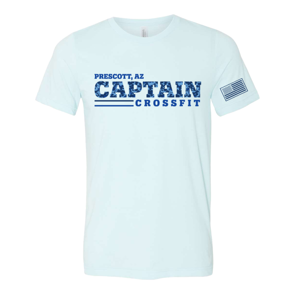 Prescott Captain CrossFit Military Tee This design brought a bold military feel to a clean everyday shirt. Overview We used a light blue tee for a soft but strong base. The front design featured CAPTAIN in a camo style with Prescott AZ above and CrossFit below. A flag hit on the sleeve added a clear […]
