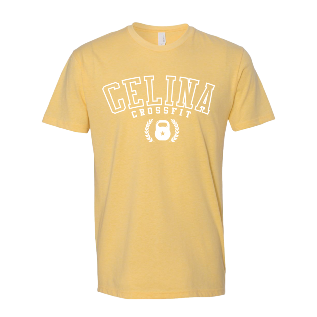 Celina CrossFit Collegiate Tee This design delivered a clean athletic look with a classic gym feel. Overview We used a soft yellow tee to bring a bright seasonal tone. The front design featured Celina CrossFit in a bold collegiate arch. A kettlebell with a star sat below with simple laurel accents. The print stayed centered […]