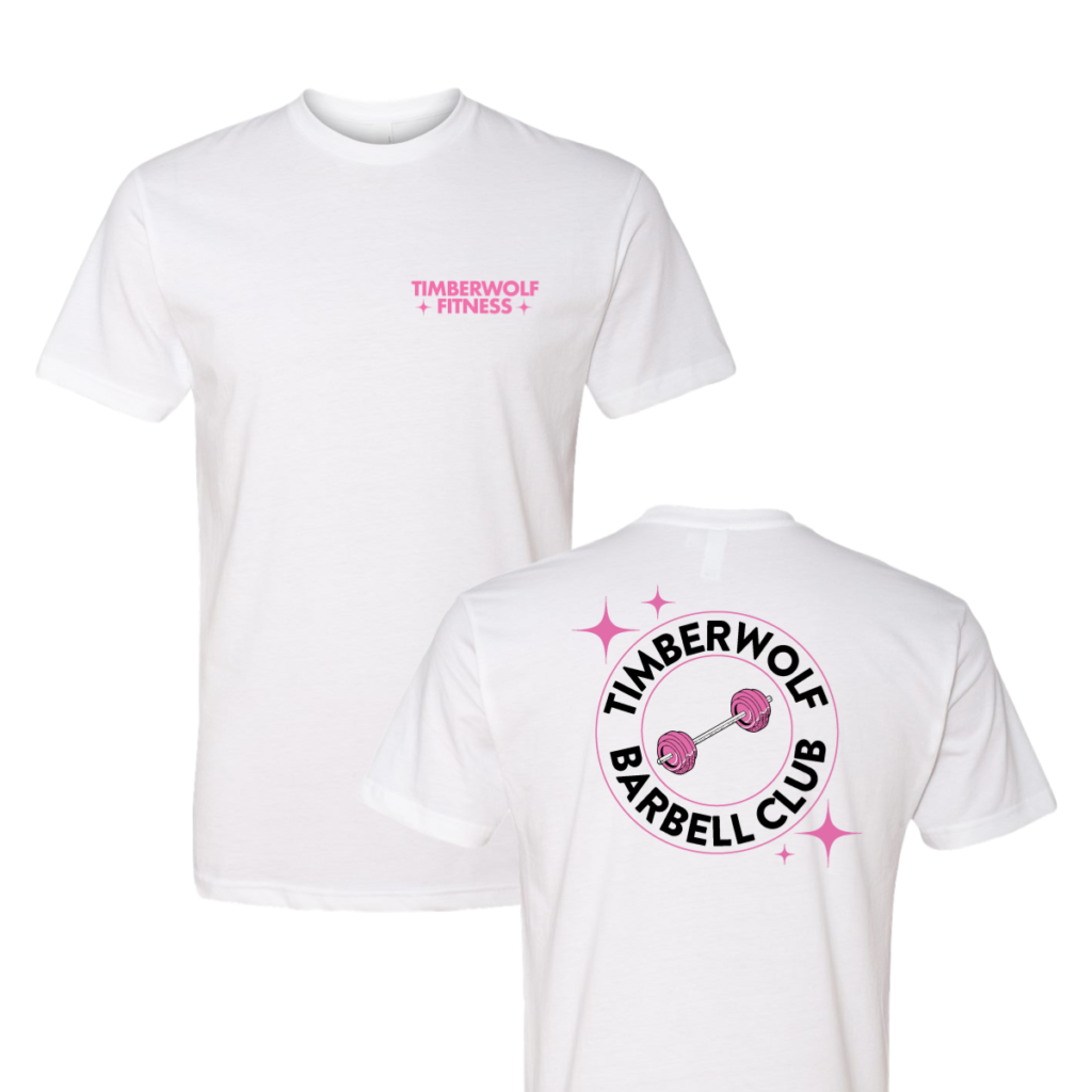 Timberwolf Barbell Club Clean Back Tee This version flipped the focus to a bold back print with a clean front. Overview We used a white tee for a bright and fresh base. The front kept a small chest logo for a simple everyday look. The back featured a large circular barbell club design with pink […]