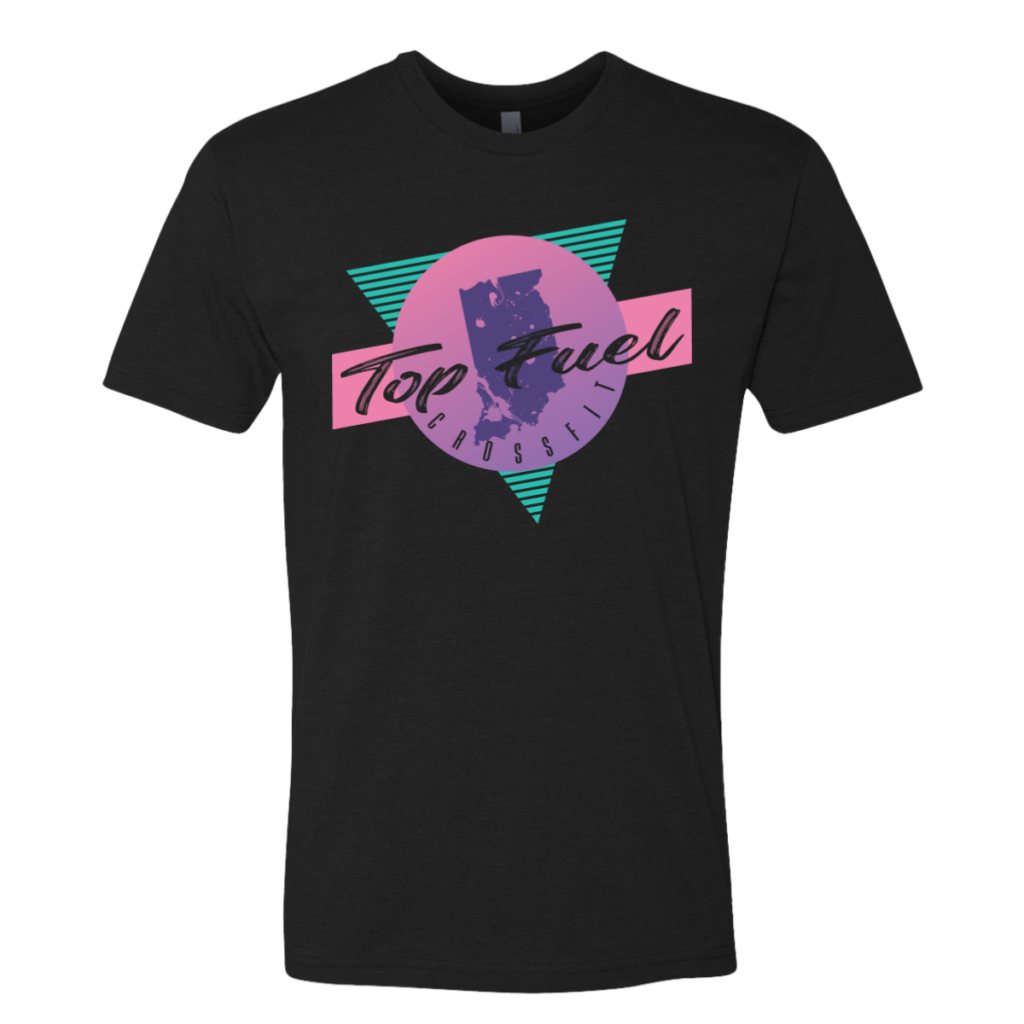 Top Fuel CrossFit Retro Tee This tee gave the gym a bold retro look that stood out in class. Overview We used a black tee to make the colors pop. The design featured a vintage style with bright pink, teal, and purple shapes layered behind script lettering. A state shape sat in the center to […]