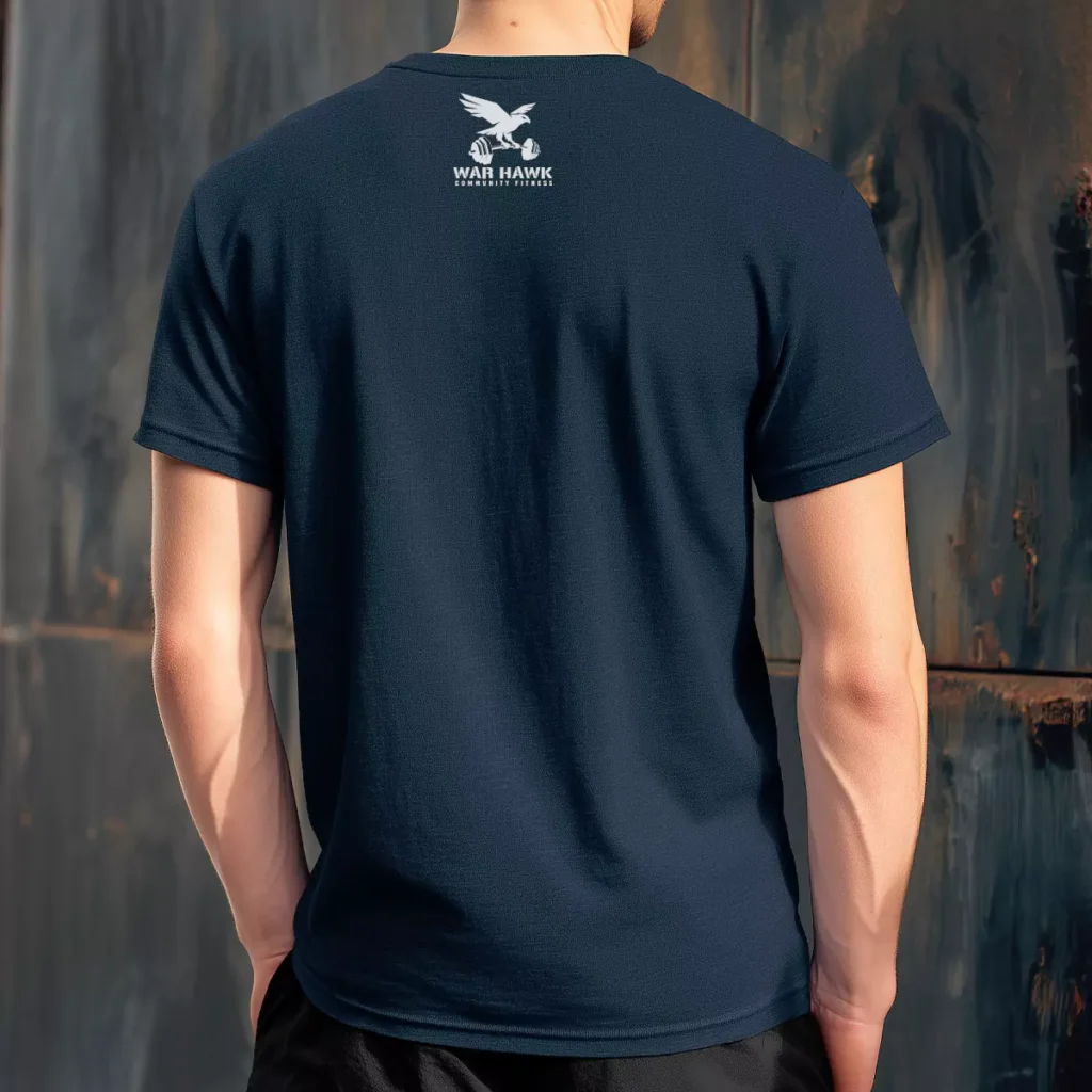 War Hawk Community Fitness put the whole mission on the front of the shirt. Name, year, flag, and every rep in order.