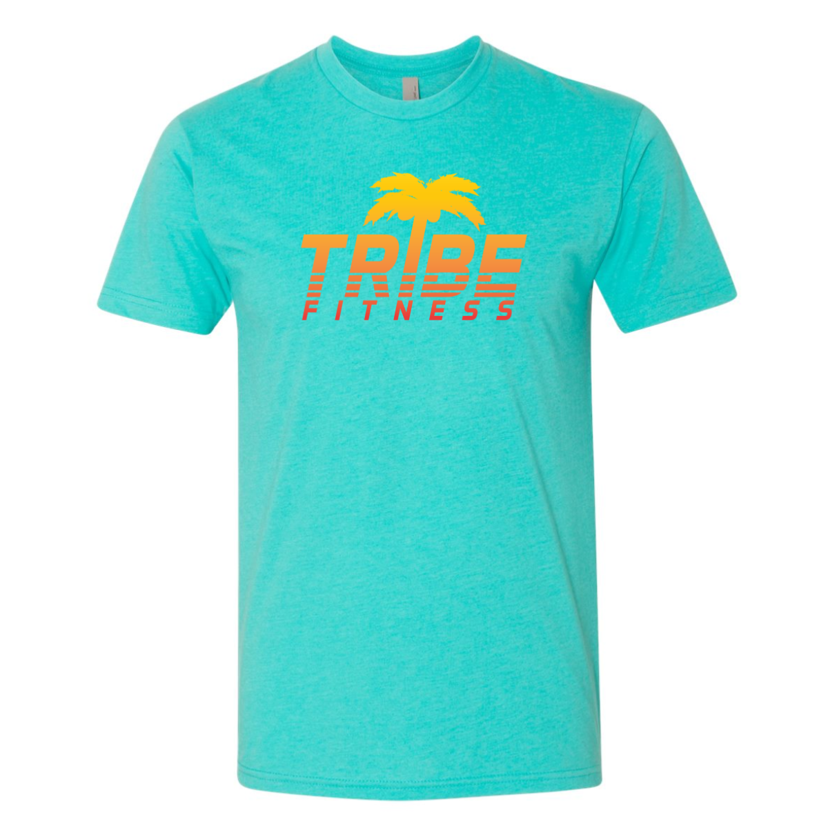 We used a teal tee to match the warm season vibe. The design featured bold Tribe lettering with a palm tree icon above for a beach feel. Orange and yellow tones added strong contrast and energy. The layout stacked clean with a slight motion effect in the text. The print sat centered for a balanced look.